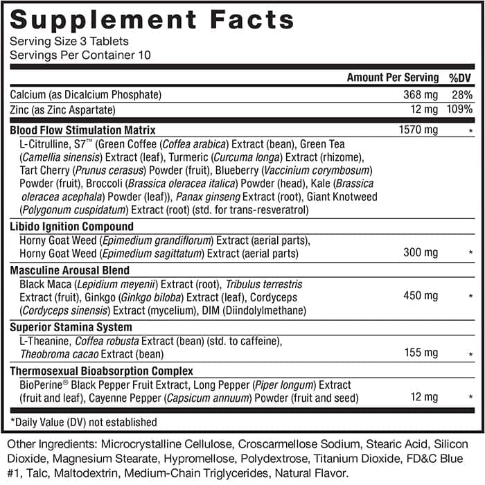 - L-Citrulline: Supports stamina and arousal by increasing nitric oxide production.