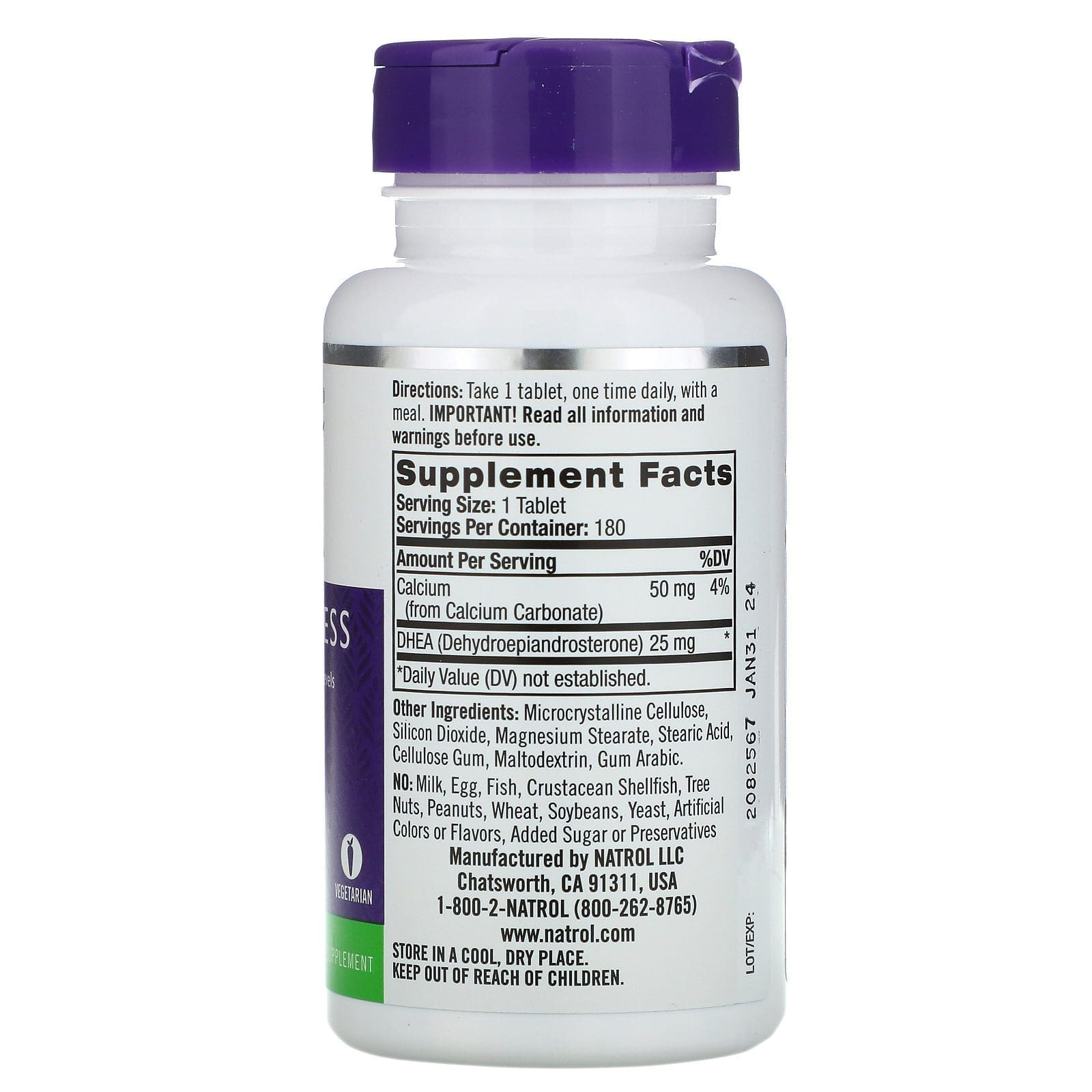 Natrol DHEA 25 mg is a premium dietary supplement formulated with Dehydroepiandrosterone (DHEA), a hormone naturally produced by the adrenal glands that supports balanced hormone levels that often decline with age.* Each bottle contains 180 tablets, offering a 6-month supply to help you feel more energized, balanced, and vibrant every day.* DHEA acts as a precursor to key sex hormones like testosterone and estrogen, making this supplement ideal for both men and women seeking natural wellness support.