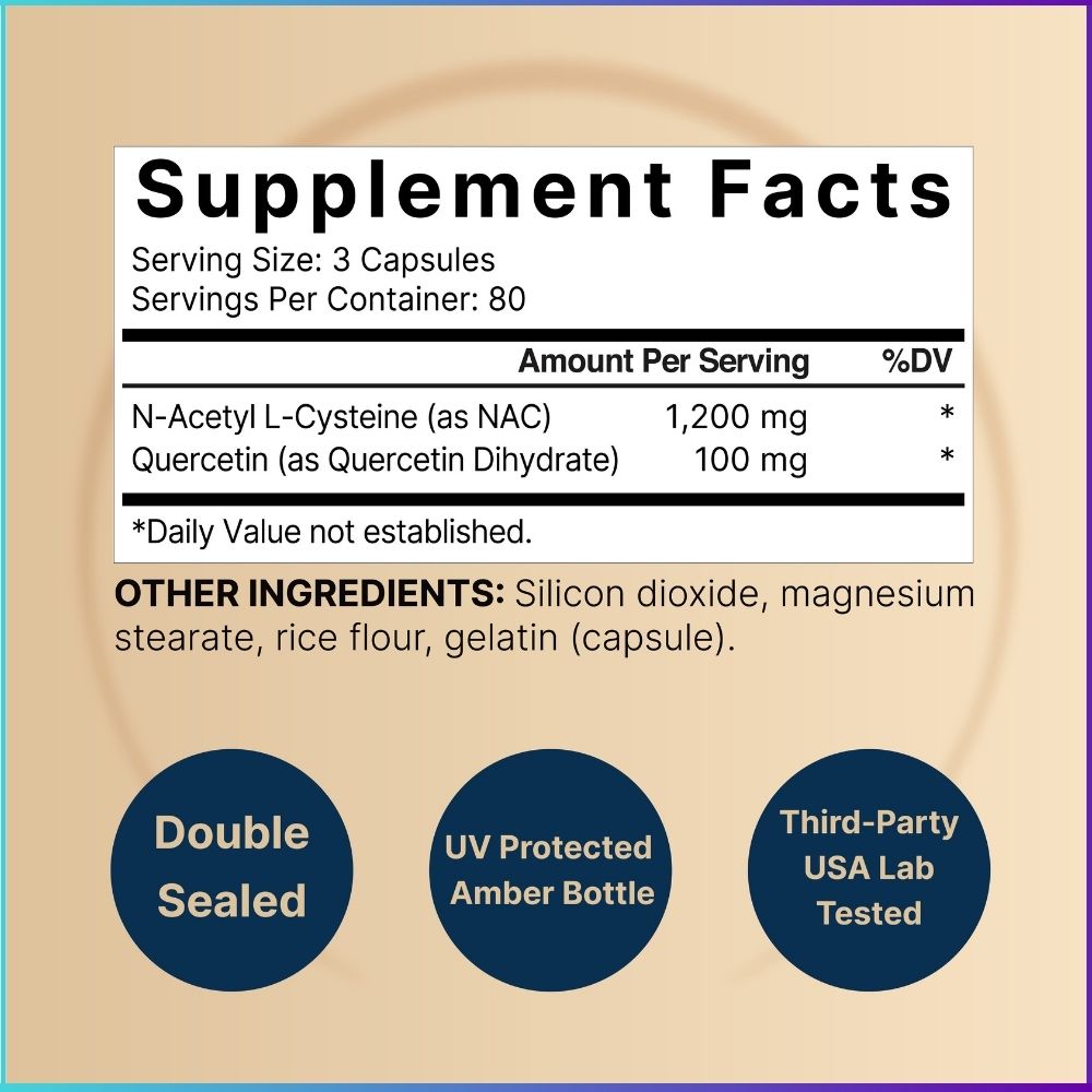 - Immune System Synergy: Quercetin helps transport zinc into cells, while NAC strengthens the body’s natural defenses.