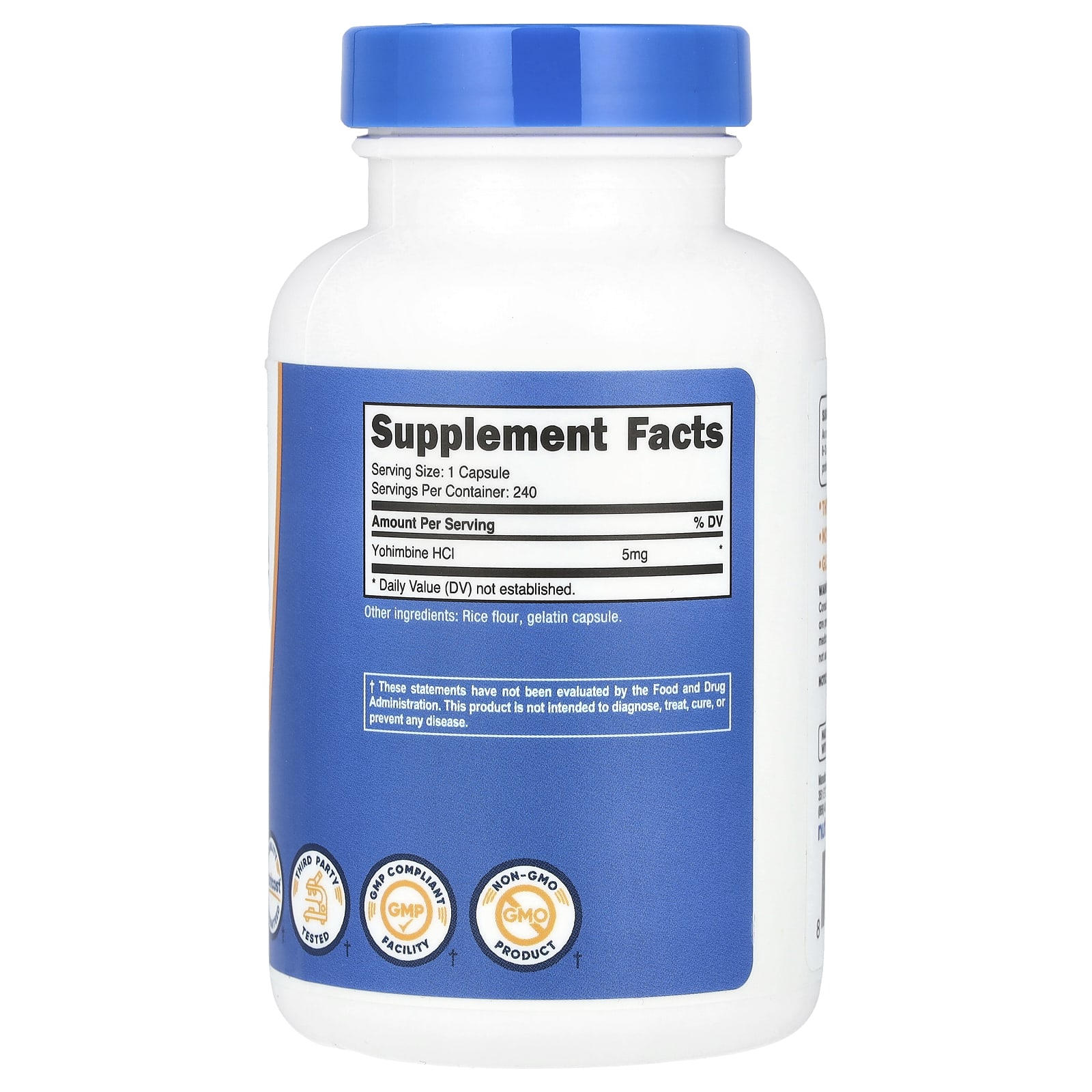 Nutricost Yohimbine 5 mg delivers a high-quality Yohimbine hydrochloride extract per capsule, designed to help support your energy, metabolic function, and overall wellness goals. Each bottle contains 120 capsules, ensuring a long-lasting supply for daily use. This formula is crafted in a GMP-compliant facility, independently tested for quality and purity, and is both non-GMO and gluten-free.