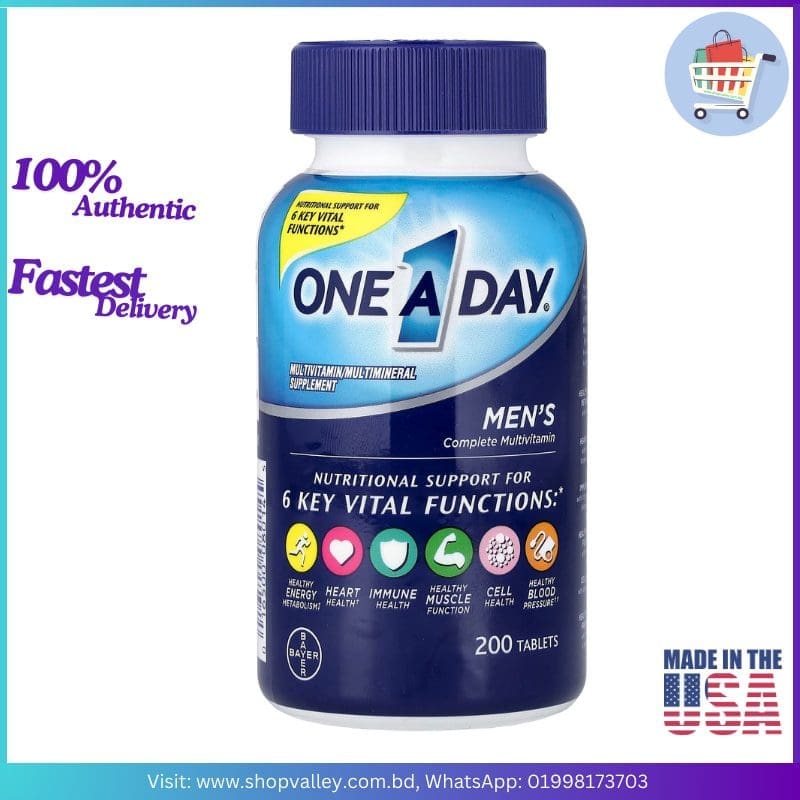 Live strong and stay sharp with One-A-Day Men’s Complete Multivitamin – a daily supplement scientifically designed to meet the unique nutritional needs of men. Backed by Bayer’s trusted formulation, this powerful blend of essential vitamins and minerals helps fuel your body and support six vital areas of health: heart, immune system, muscles, metabolism, cell health, and blood pressure.