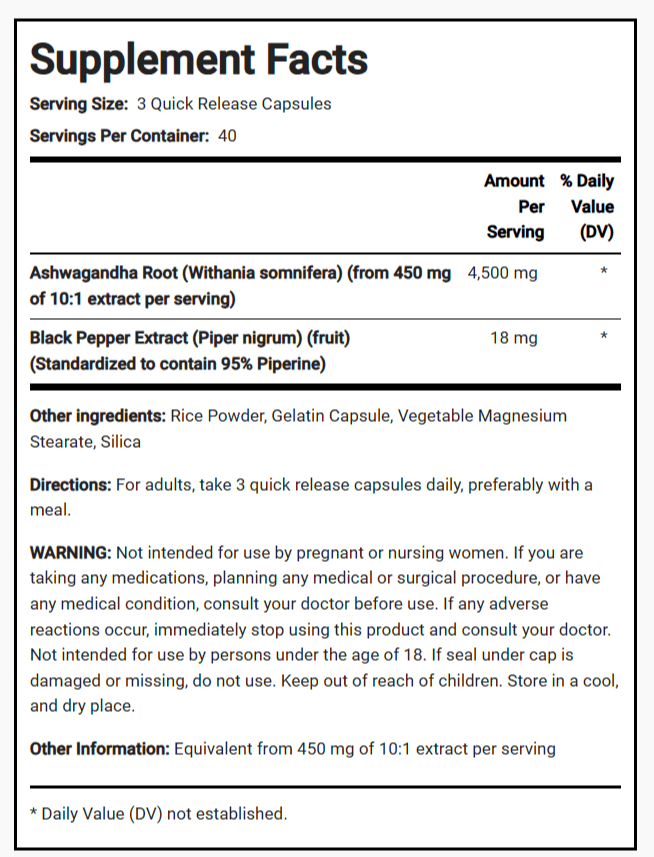 • Maximum Potency: Each serving delivers 4,500 mg of Ashwagandha root, making it one of the most potent sources available.