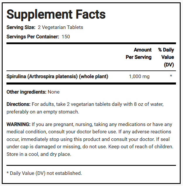 Key Benefits of Piping Rock Organic Spirulina 1000 mg: